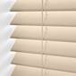 クリームの塗装に木目テキスチャー加工のスラットは、チルトコントローラーのコードで簡単に光の調整ができます。