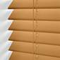 無垢の桐をオレンジのステイン塗装で明るいオークに染め上げました。 ゴールデンオークの明るい色合いのスラットはマットで滑らかな仕上げ。モダンで新鮮な印象のブラインドです。