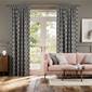 ラティス ブラック カーテンは、グレーの生地にベルベット調の重厚なブラックの幾何学模様のカーテン。