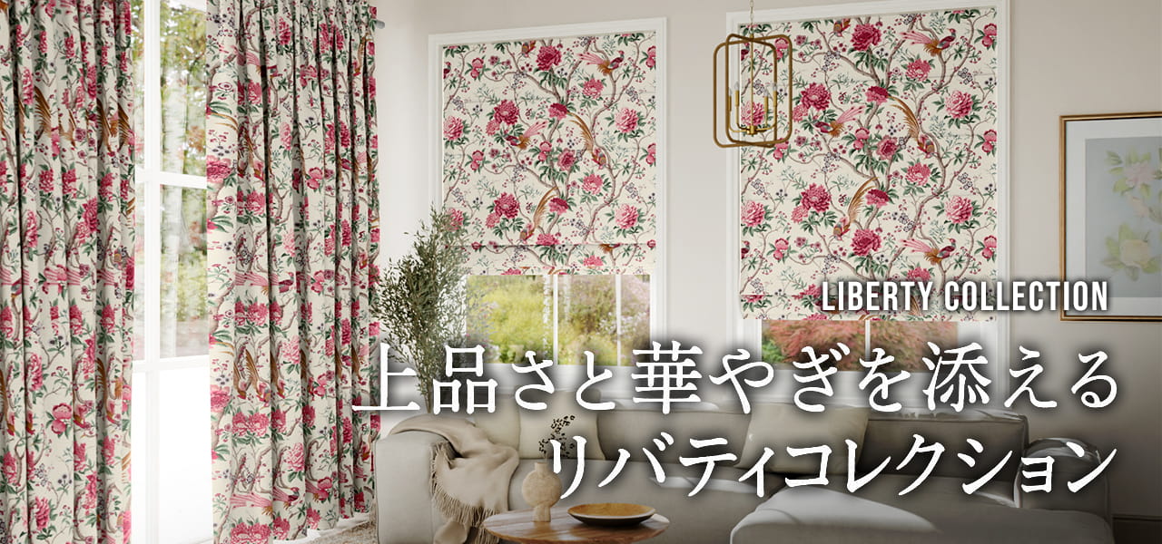 リバティシリーズの中でも特に人気の高いロールスクリーン、ローマンシェード、カーテンを集めました。世代を超えて支持されるリバティのデザインで、お部屋に華やかで上品なアクセントをプラスしてみませんか。