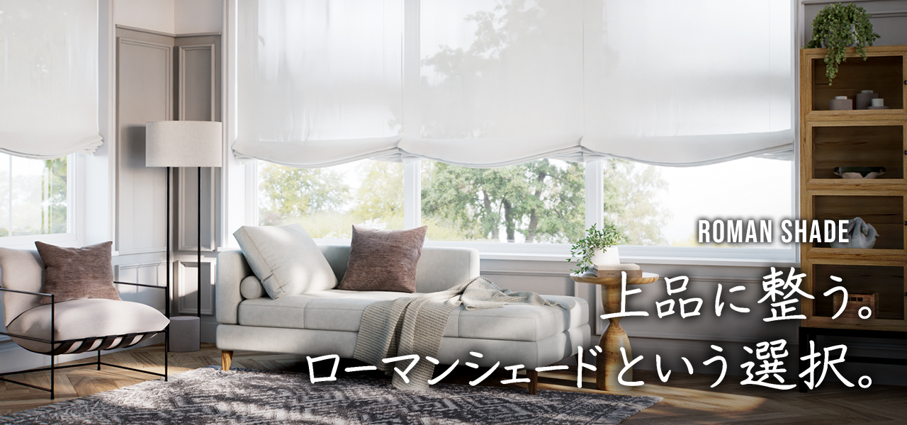 人気のローマンシェードを厳選ラインナップ。豊富なカラーバリエーションのスラブ織や、ウィリアム・モリスのデザインも多数ご用意。採光・遮光の裏地が選べるタイプや、やわらかく光を遮る弱遮光タイプもございます。