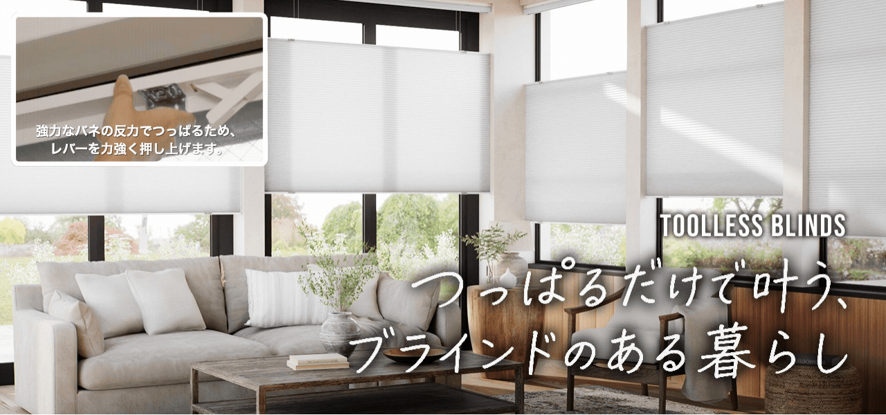すべて「つっぱり ブラインド」としての機能を備えており、お部屋の雰囲気や用途に合わせて最適な一枚が見つかります。