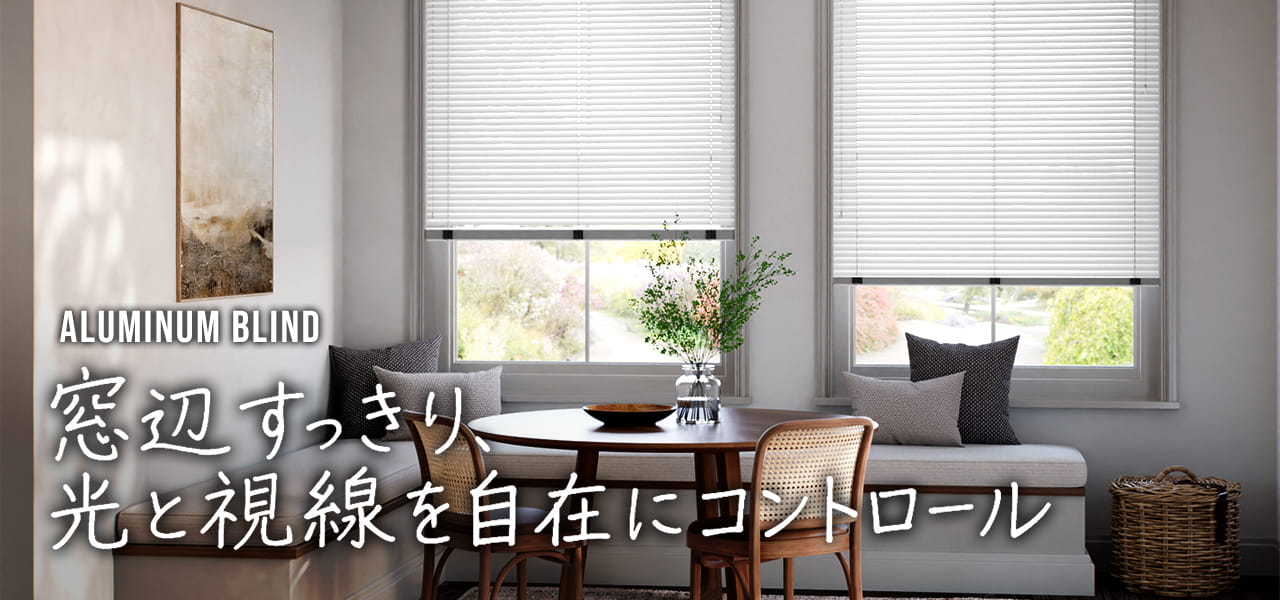 シンプルで実用的なアルミブラインドは、多くのお客様に選ばれている人気アイテムです。光や視線を自在にコントロールできるスラット構造。豊富なカラーバリエーションやウッド調デザインも揃っているので、お部屋の雰囲気に合わせて選べます。